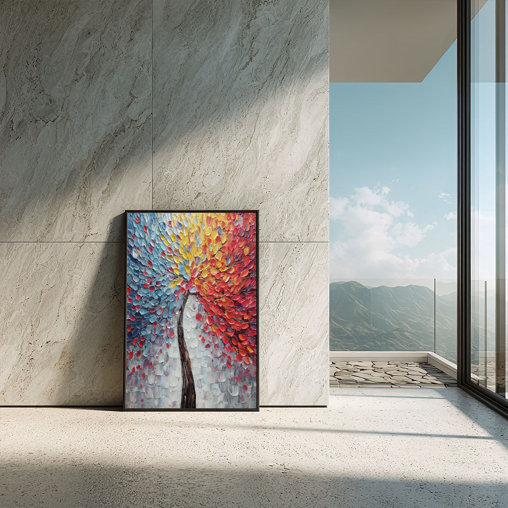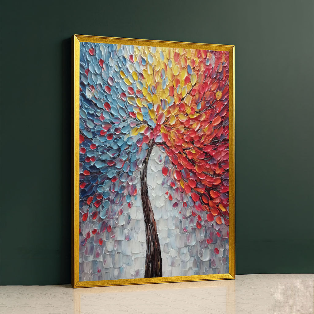 Vibrant Multicolor Petal Burst Tree Canvas Wall Art