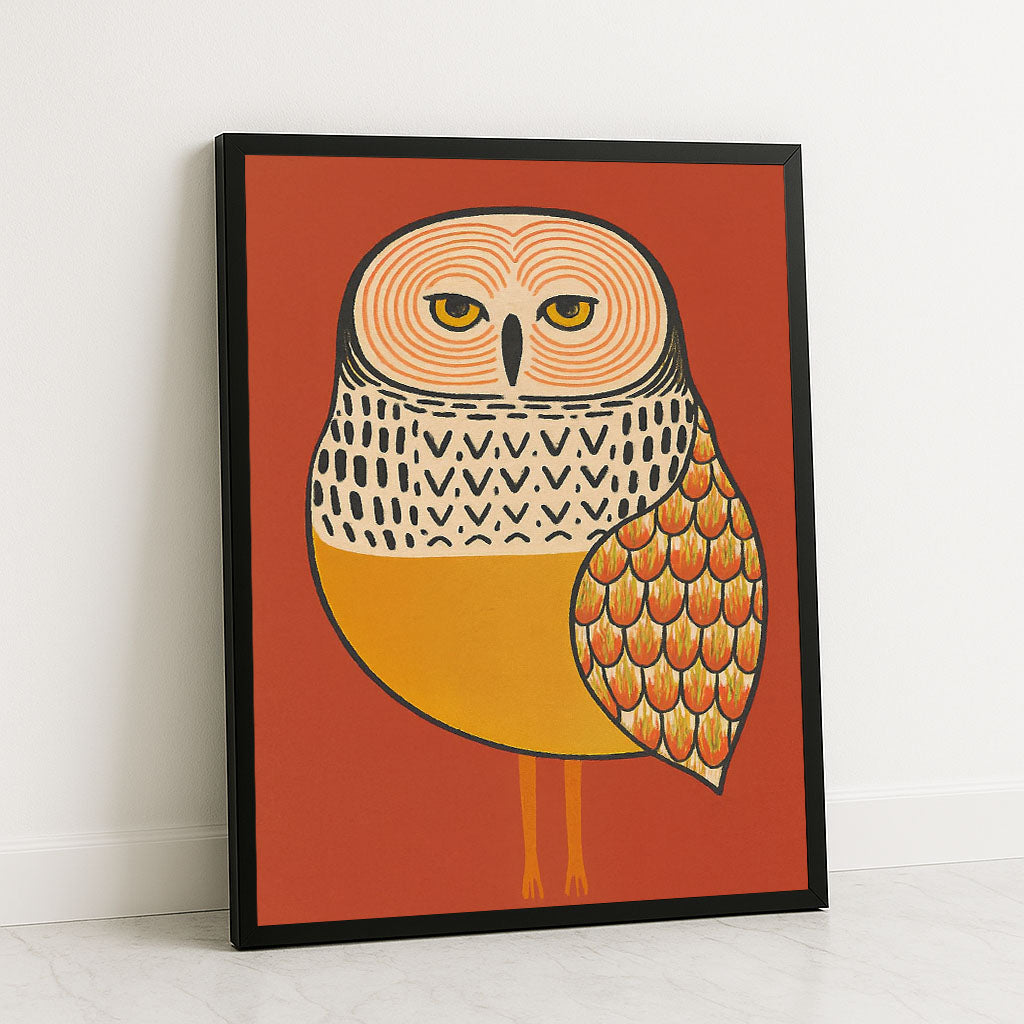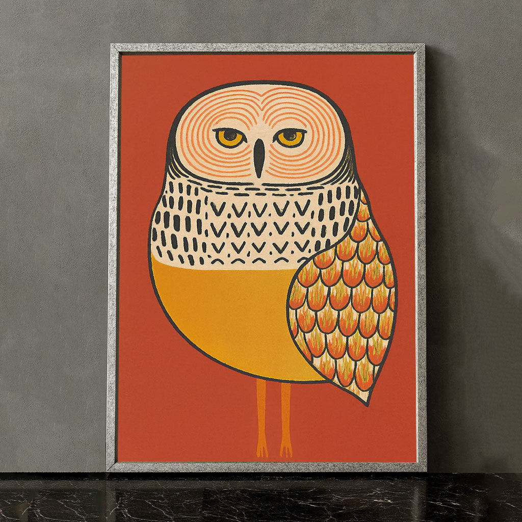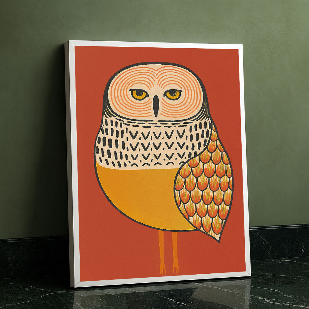 Vibrant Orange And Yellow Owl Illustration Canvas Wall Art