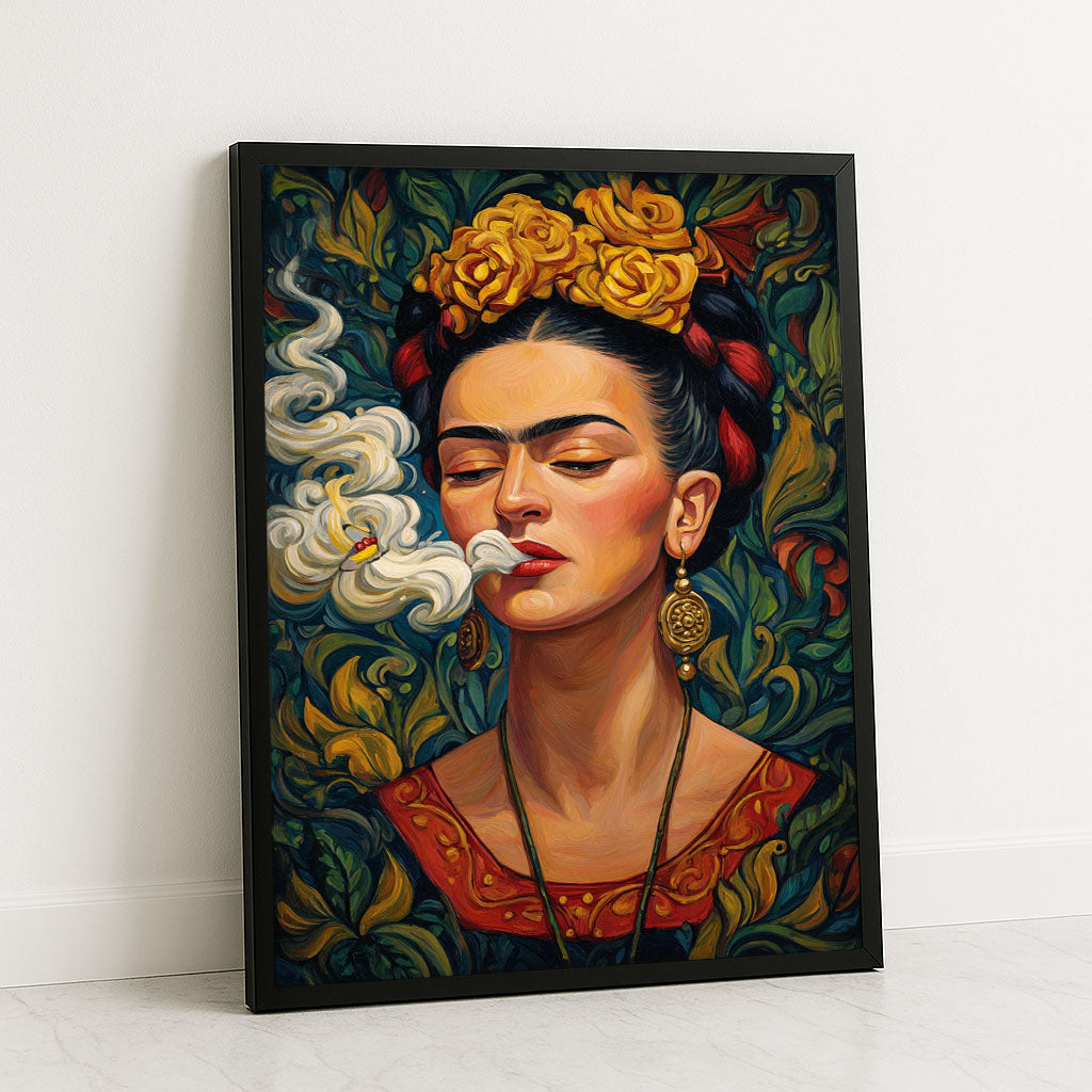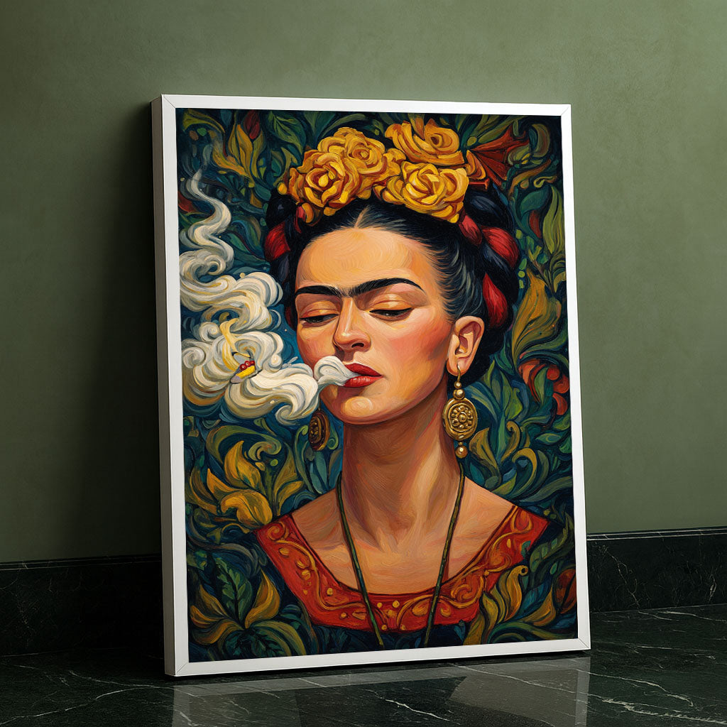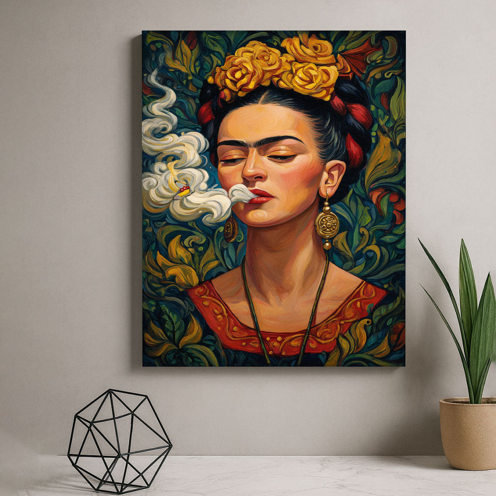Vibrant Woman With Yellow Flowers And Smoke Canvas Wall Art