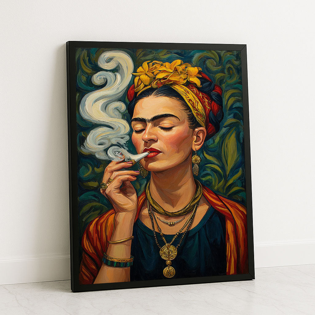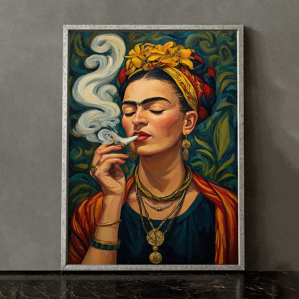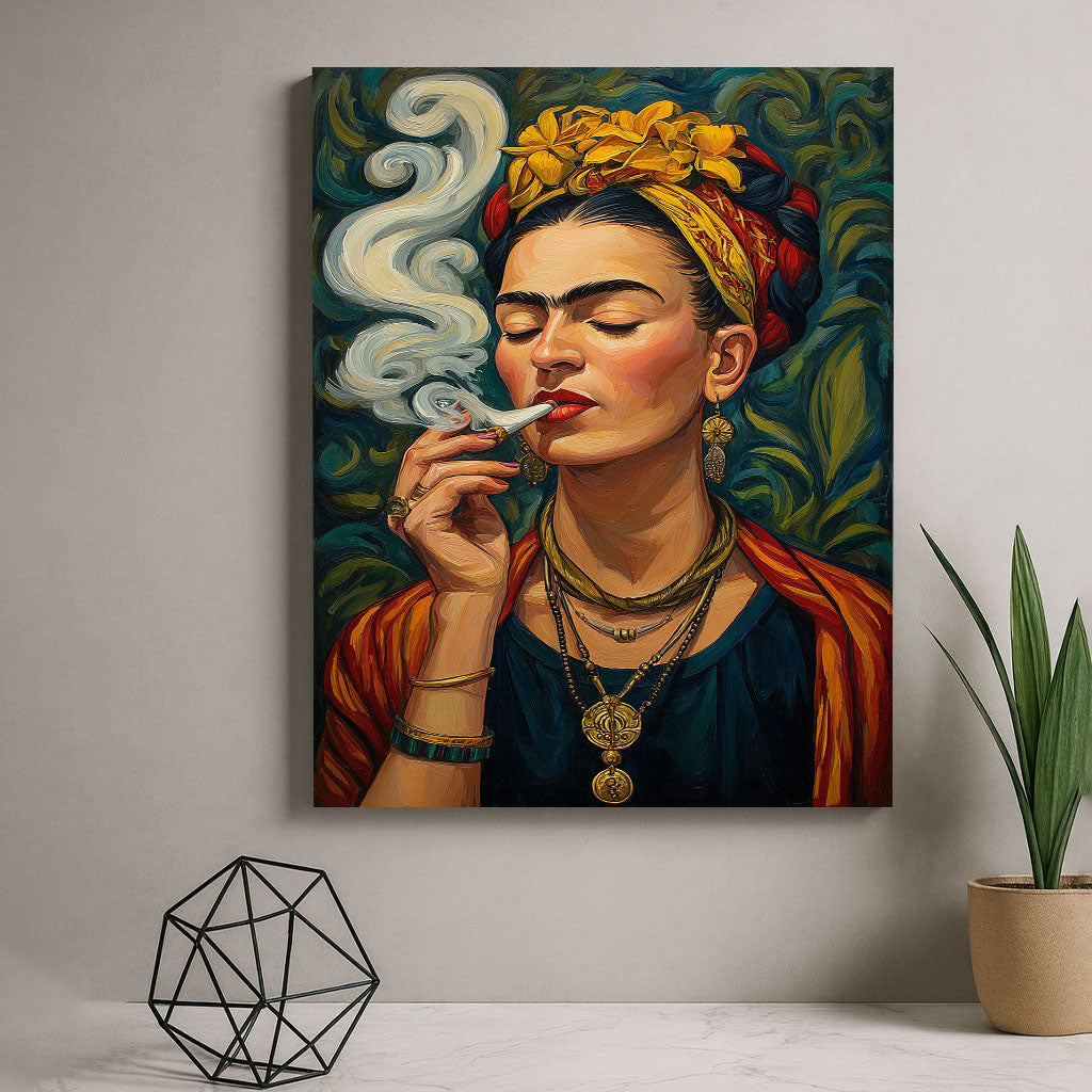 Vibrant Woman With Yellow Flowers Smoking Canvas Wall Art