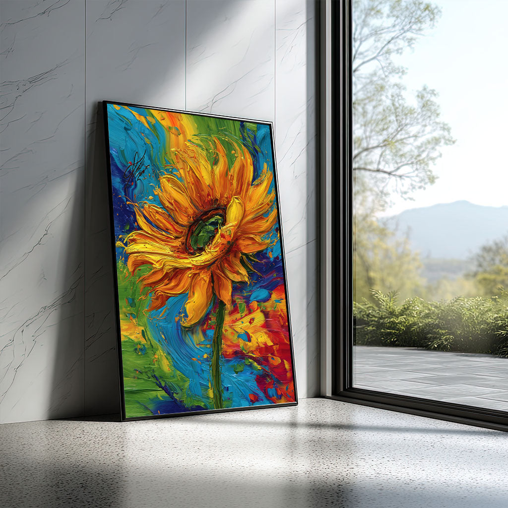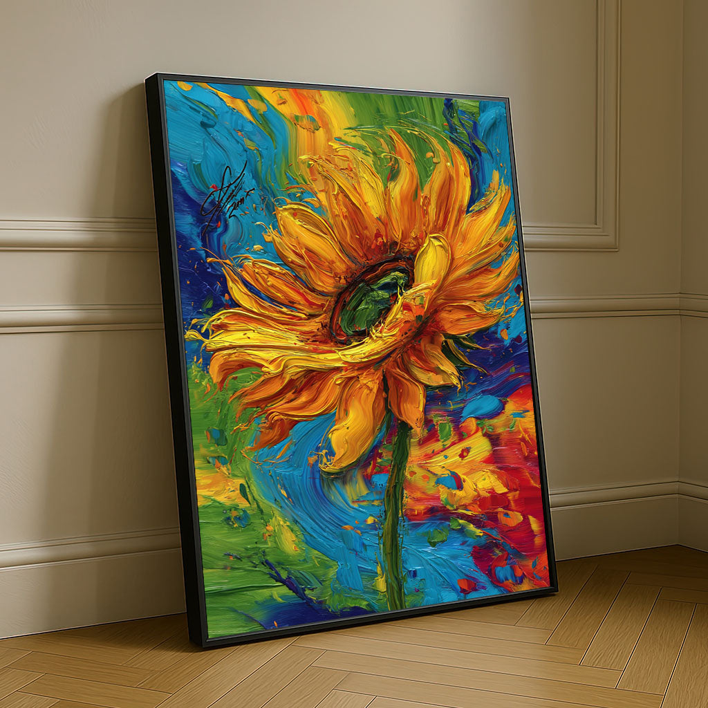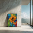 Vibrant Yellow Sunflower With Colorful Swirls Canvas Wall Art