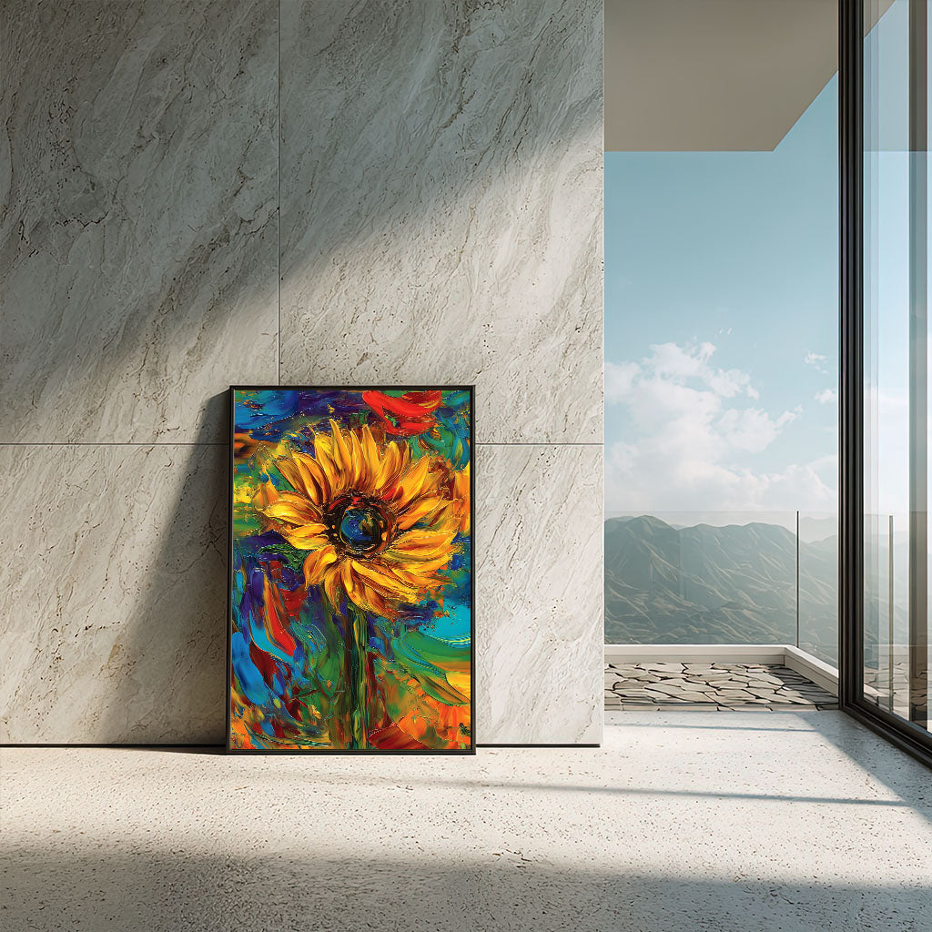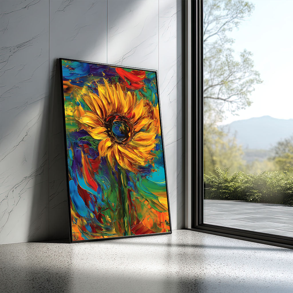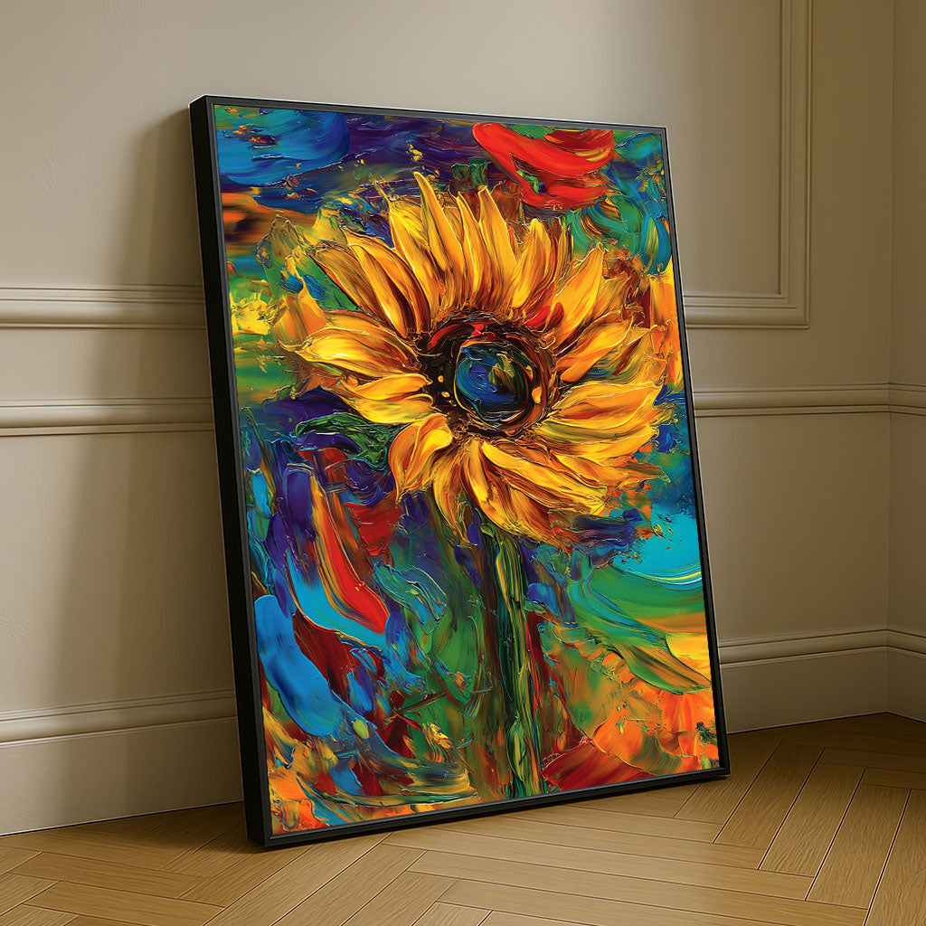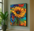 Vibrant Yellow Sunflower With Colorful Swirls Canvas Wall Art