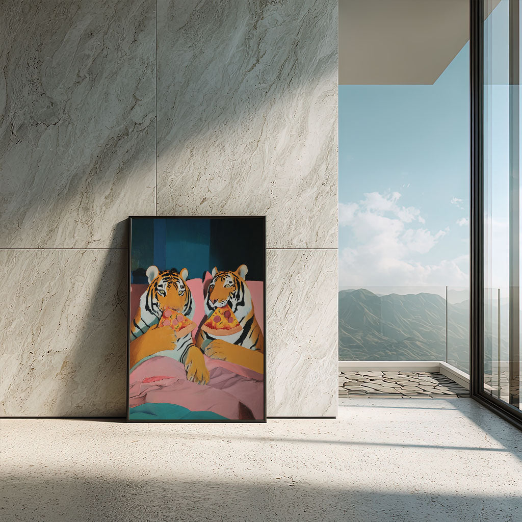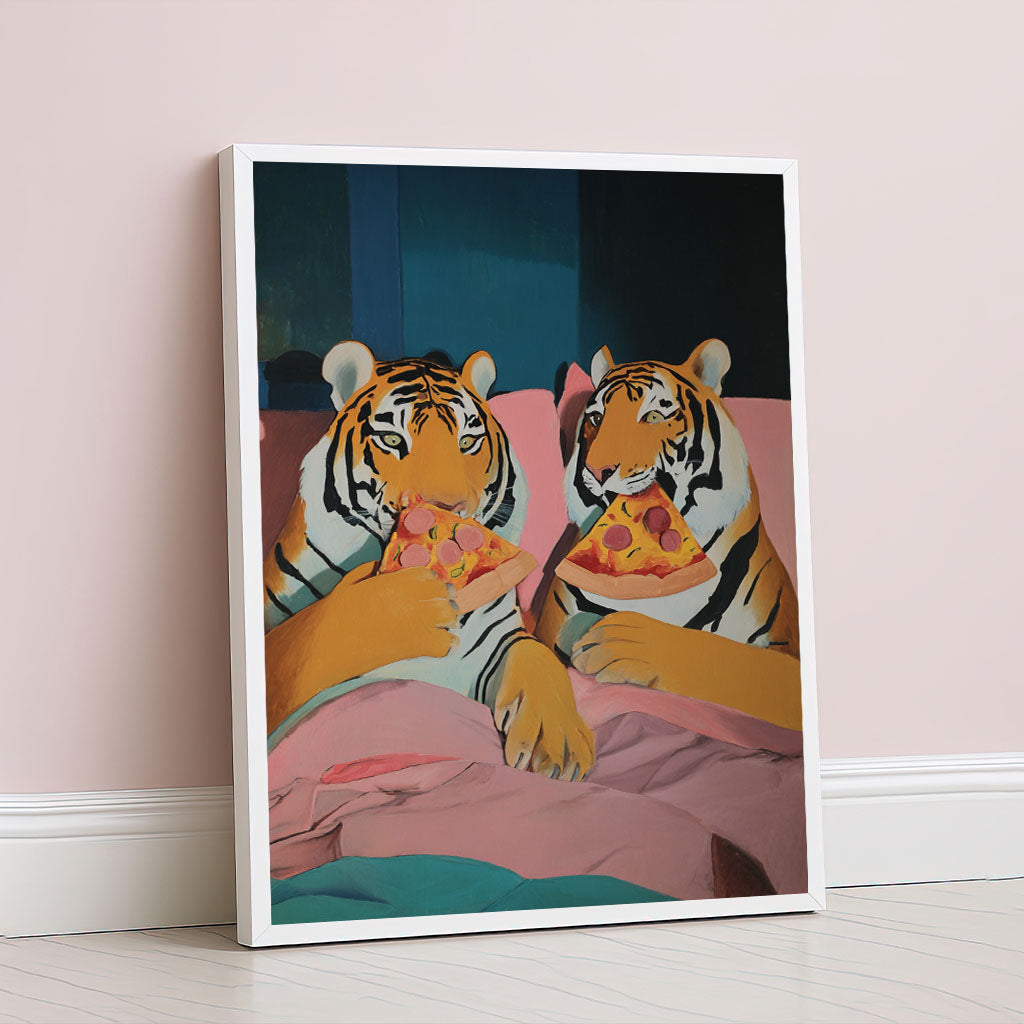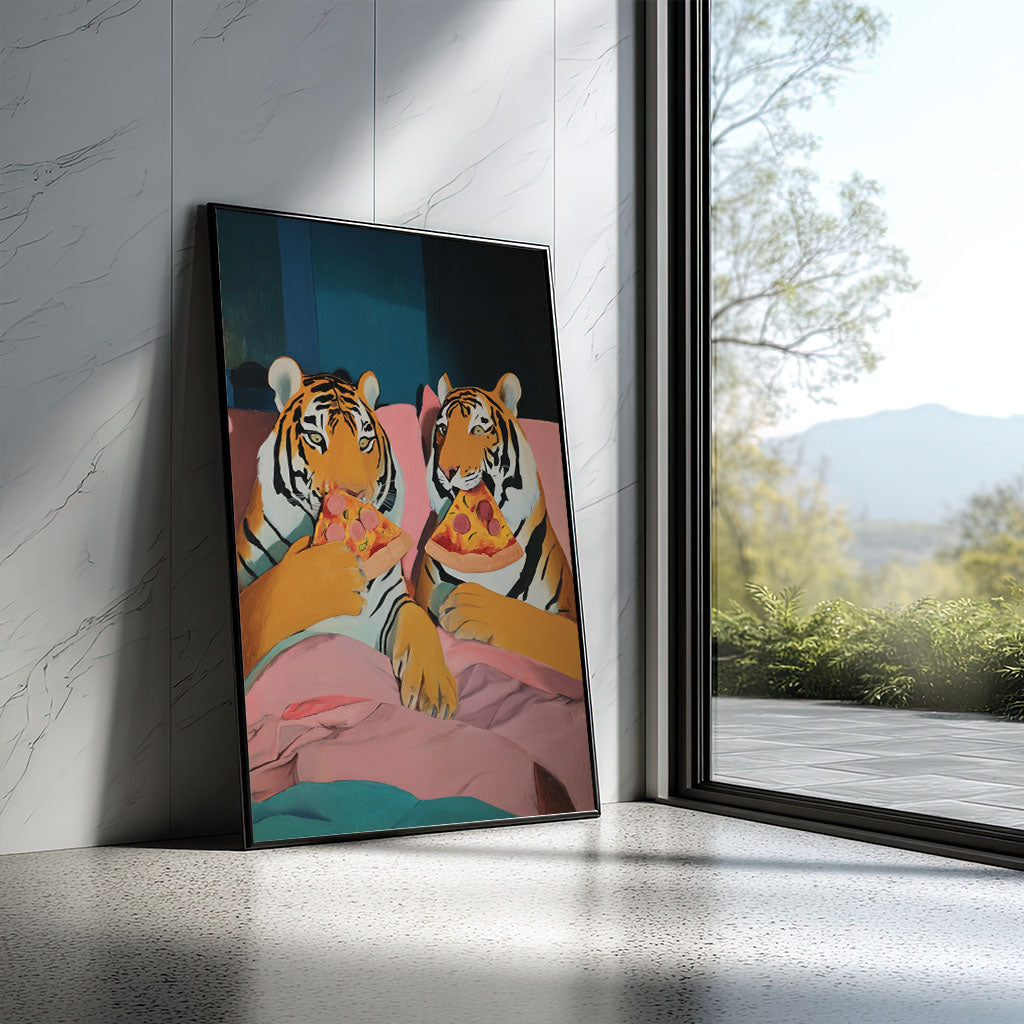 Whimsical Tigers Eating Pizza Canvas Wall Art